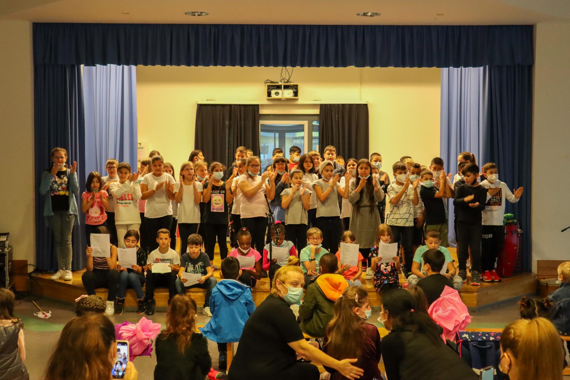 Herr Werner begrüßte die Anwesenden in seiner Eröffnungsrede, bevor die vierten Klassen unter der Anleitung ihrer Klassenlehrkräfte Frau Landes, Frau Schmoll und Herr Tunca ihr liebevoll gestaltetes Rahmenprogramm starteten, das die offiziellen Tagesordnungspunkte auflockerte und für Begeisterung bei den anwesenden Kindern und Erwachsenen sorgte. Los ging es mit einem Lied, ein Cupsong mit Bodypercussion und ein abschließender Tanz sollten folgen. Sie zeigten die Begeisterungsfähigkeit und das Engagement, die die Kinder der Grundschule auszeichnen und nahmen auch dem letzten Neuling die Angst vor dem Eintritt ins Schulalter.